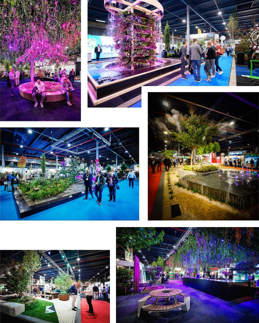 Sinds 2017 vindt u Het Plein in hal 4 en dat is dit jaar niet anders. Het Plein is een initiatief van een tiental aan elkaar complementaire bedrijven die elk specialist zijn op hun eigen gebied. Van aankleding en aanleg tot waterafvoer. van constructie tot verlichting en natuurlijk bomen en planten, het is allemaal vertegenwoordigd op Het Plein.