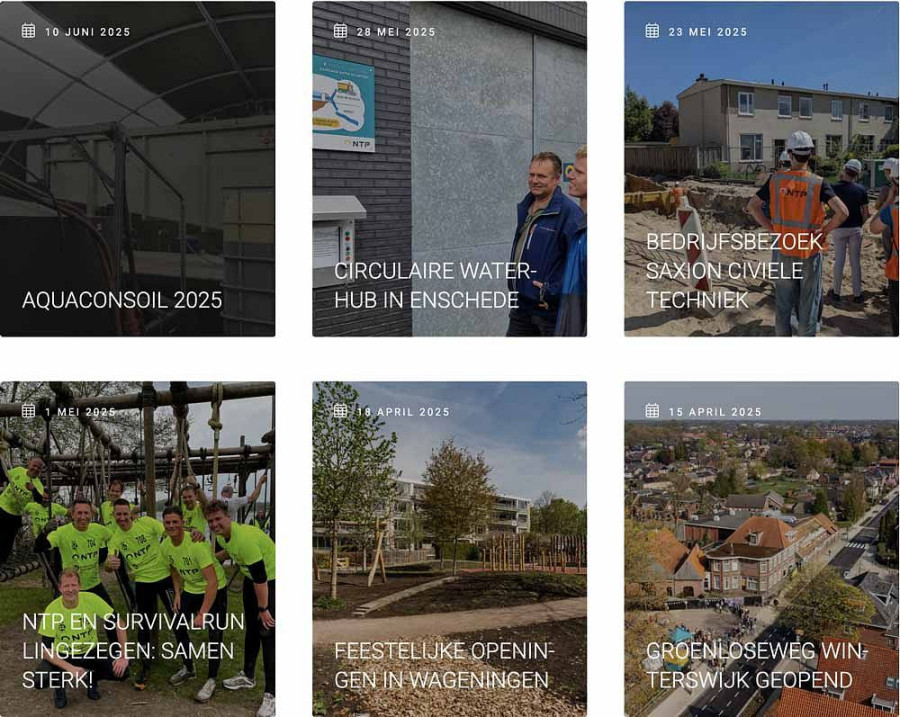 NTP is een regionale aannemer en actief op het gebied van wegen, bodem, water, energie en advies. In samenwerking met overheid, bedrijven en instellingen richt NTP de leefomgeving op infrastructureel en milieukundig vlak op een veilige en gezonde wijze functioneler en duurzamer in. Naast uitvoeringswerkzaamheden richt NTP zich op het ontwikkelen van duurzame innovaties en nieuwe samenwerkingsvormen in de keten. NTP heeft vestigingen in Hoevelaken, Hattem, Zevenaar en Enschede.