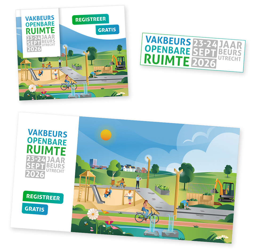 Slapend bezoekers uitnodigen? Plaats dan de beursbanners op jullie website, deel ze in de eigen social media kanalen en zet ze onderaan e-mails.