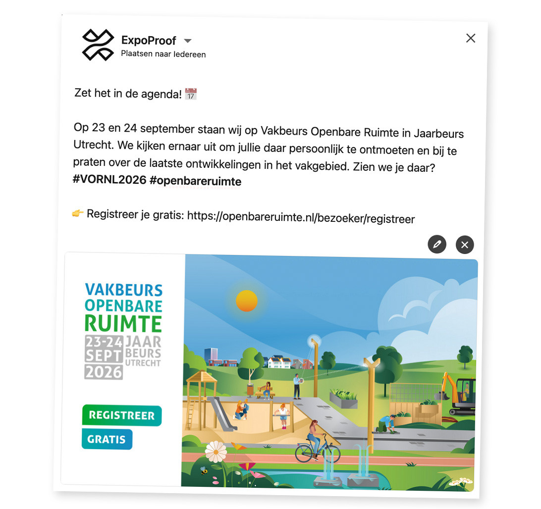 De beurs is een ideaal haakje voor jullie contentkalender. Nodig mensen uit, kondig productlanceringen aan, plan beursacties of vertel mensen over jullie voorbereidingen.
