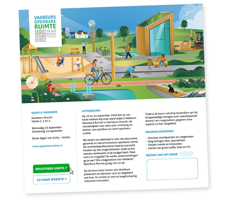 Zo weten geïnteresseerden meteen waar en wanneer ze jullie kunnen bezoeken. Vergeet niet om een linkje naar de beurswebsite toe te voegen!