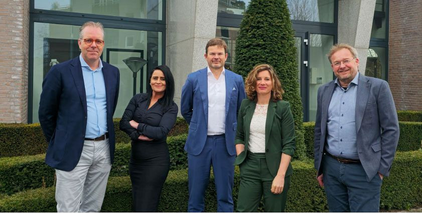 Op de foto van links naar rechts Ralph Groenendaal (CEO Afinius), Yurdagul Simsek (Directeur Nobralux), Dion Versteeg (CFO Afinius), Janneke van Haaren (Directeur NODR), Frank Jan Uittenbogaart (Directeur DG Groep)